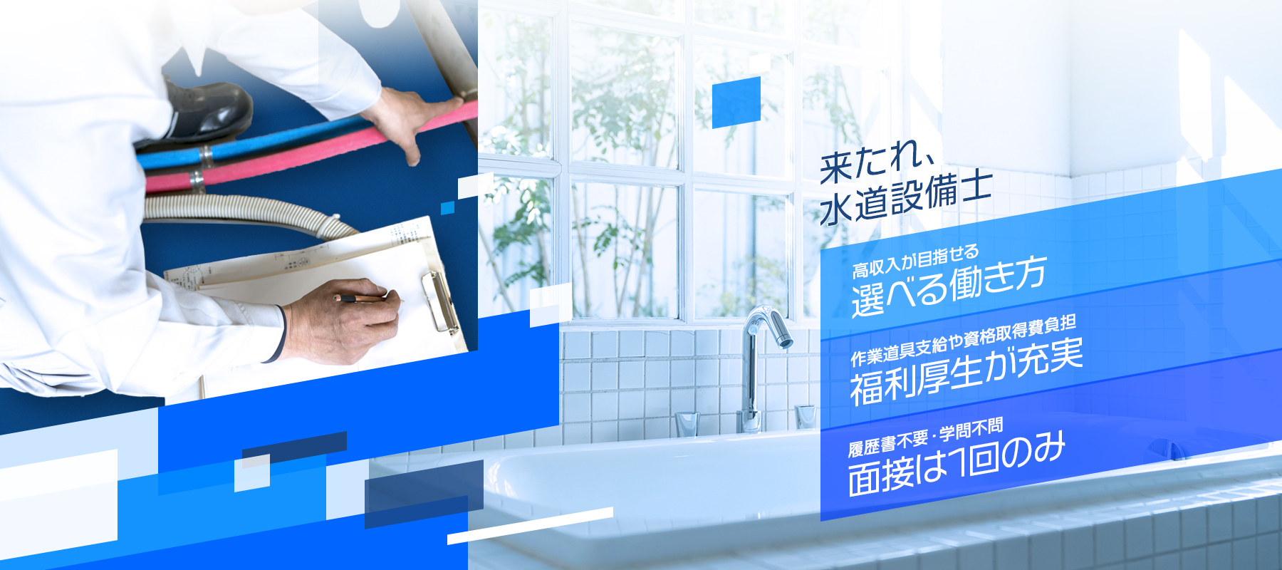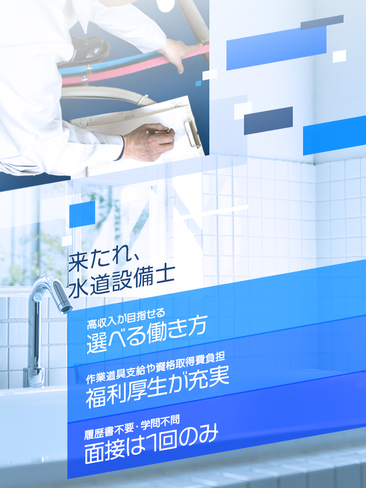 水道設備工事のため大きな危険はなく、景気に左右されないインフラで堅実に働けるのが特長です。